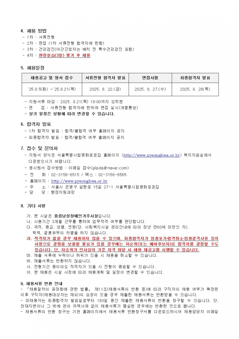 시립평화로운집 제6차 신입직원 채용공고(생활지도원) 페이지 정보 작성자 한동주 작성일 25-08-05 16:09 조회 7,681회 댓글 0건 첨부파일 파일 시립평화로운집 입사지원서이력서,자기소개서및개인정보동의서.hwp (54.0K) 106회 다운로드 DATE : 2025-08-05 16:10:16 파일 2025년 6차 생활지도원채용공고.pdf (68.3K) 100회 다운로드 DATE : 2025-08-05 16:10:16 본문 이전글 다음글 목록 답변