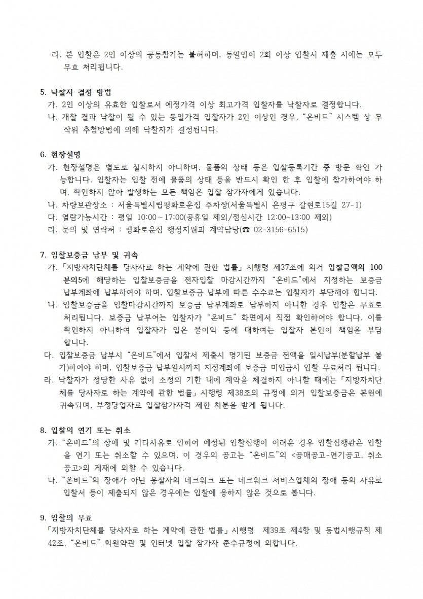 업무용 차량 매각 한국자산관리공사 전자자산처분시스템(온비드) 입찰공고 페이지 정보 작성자 한동주 작성일 25-07-09 11:45 조회 8,524회 댓글 0건 첨부파일 파일 입찰공고서_온비드_차량매각_공고문.hwp (70.5K) 91회 다운로드 DATE : 2025-07-09 11:45:50 본문 이전글 다음글 목록 답변