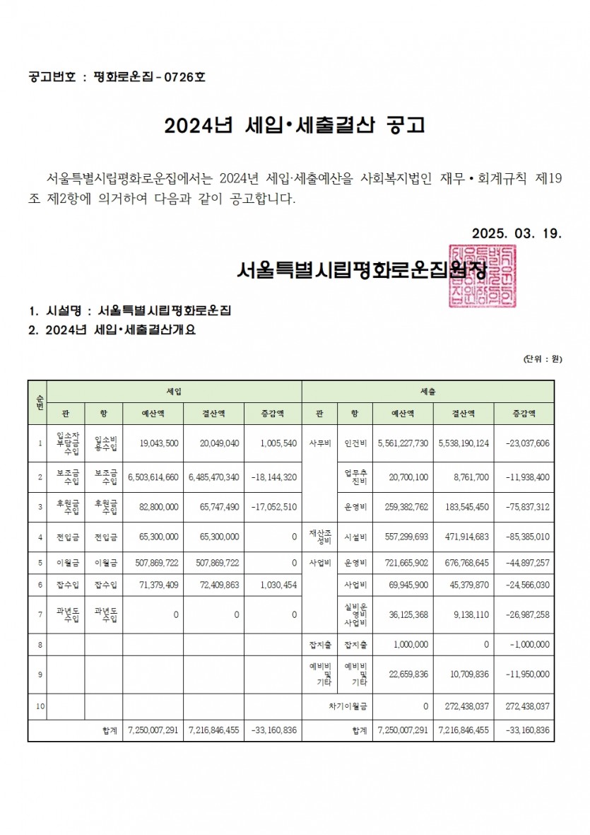 2024년 세입세출 결산서 공고 페이지 정보 작성자 한동주 작성일 25-03-19 13:28 조회 12,507회 댓글 0건 첨부파일 파일 홈페이지2024 세입.세출견결산공고.pdf (48.3K) 138회 다운로드 DATE : 2025-03-19 13:28:29 본문 2024년 세입세출결산서를 다음과 같이 공고합니다. 이전글 다음글 목록 답변