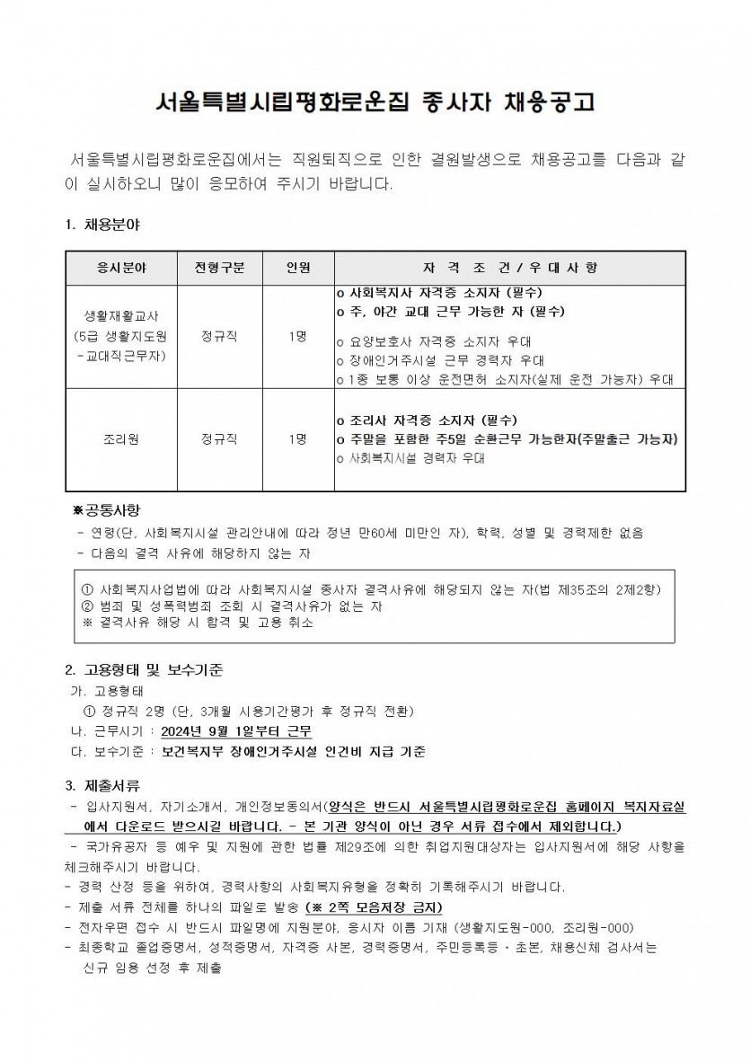 2024년 제8차 종사자채용 모집공고 페이지 정보 작성자 한동주 작성일 24-07-30 18:02 조회 18,369회 댓글 0건 첨부파일 파일 시립평화로운집 입사지원서이력서,자기소개서및개인정보동의서.hwp (22.5K) 178회 다운로드 DATE : 2024-07-30 18:02:25 본문 이전글 다음글 목록 답변