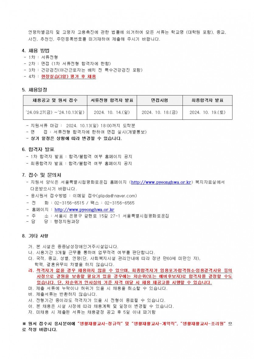 평화로운집 제10차 직원채용공고 페이지 정보 작성자 한동주 작성일 24-09-27 17:36 조회 17,508회 댓글 0건 첨부파일 파일 2024년-생활지도원 10월.hwp (36.5K) 108회 다운로드 DATE : 2024-09-27 17:36:34 파일 시립평화로운집 입사지원서이력서,자기소개서및개인정보동의서.hwp (22.5K) 80회 다운로드 DATE : 2024-09-27 17:36:34 본문 이전글 다음글 목록 답변