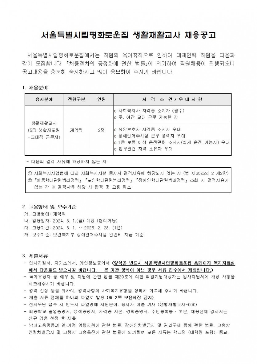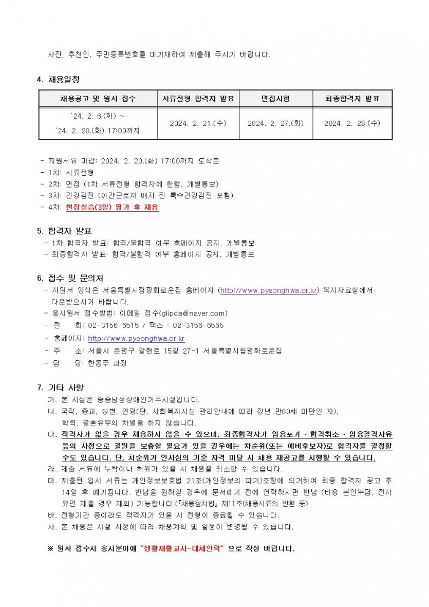 생활재활교사 대체인력 채용공고 페이지 정보 작성자 한동주 작성일 24-02-06 18:37 조회 19,754회 댓글 0건 첨부파일 파일 시립평화로운집입사지원서이력서,자기소개서및개인정보동의서.hwp (22.5K) 122회 다운로드 DATE : 2024-02-06 18:37:21 본문 이전글 다음글 목록 답변