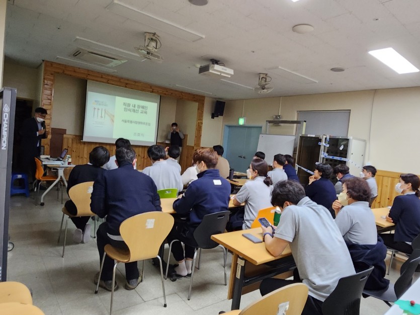 공지 | 장애인 인식 개선 교육 페이지 정보 작성자 장설궁 작성일 23-03-17 15:47 조회 7,777회 댓글 0건 본문 장애감수성을 키우고 장애공감문화 조성과 장애유무를 떠나 "우리는 모두 사람이니까" 라는 관점을 통해 포용사회 실현에 기여하기 위한 장애인 인식개선교육을 3월 15일 실시하였습니다. 열강을 해주신 조효식, 장양숙 강사님과 경청해주신 선생님들 감사합니다. 이전글 다음글 목록
