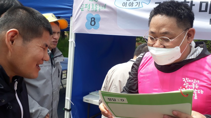 거주인 이야기 | 2023 은평봄봄축제 참가(4.21) 페이지 정보 작성자 한동주 작성일 23-04-22 15:54 조회 9,704회 댓글 0건 본문 장애인의 날을 맞이여서 준비된 서울 혁신파크 은평봄봄축제에 평화로운집 가족들과 함께 참여했습니다.인식개선활동 퀴즈 참여 및 이력서 작성등 활동도 참여하고 팝콘도 먹었습니다.장애인의 날을 맞아 모두 행복한 은평이 되기를 바래봅니다. 이전글 다음글 목록