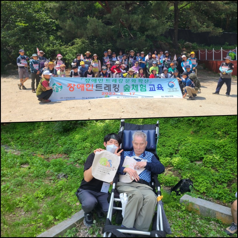 한국트레킹연맹의 특수 장애인용 트레킹 휠체어를 이용하여 산속의 작고 귀여운 다람쥐도 구경하고