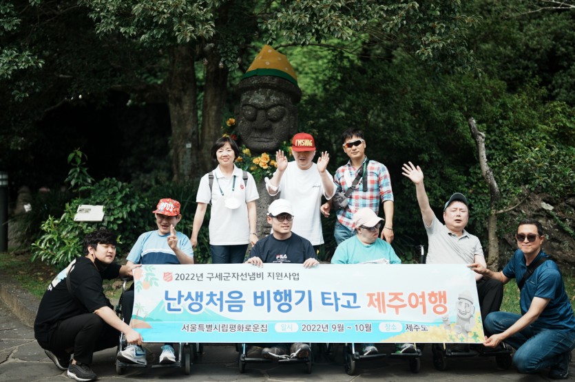 거주인 이야기 | 1차 난생처음 비행기타고 제주여행 페이지 정보 작성자 한동주 작성일 22-09-24 17:56 조회 10,483회 댓글 0건 본문 평화로운집 중중장애인들이 난생처음 비행기타고 제주여행을 갔습니다. 총 2박3일 일정으로 9월 20일부터 22일까지 2박3일 일정으로 사려니숲길 천지연폭포, 색달해변, 박물관등을 관람하면서 아름다운 제주를 만끽하고 왔습니다. 처음 타는 비행기 여행으로 설레임 가득한 추억을 만들고 왔습니다. '난생처음 비행기타고 제주여행'은 구세군자선냄비 지원을 통해 총 3차에 걸쳐서 9월,10월 중 각 2박3일 일정으로 중증장애인들과 진행되는 여행프로그램입니다. 앞으로 2차 3차 여행도 기대해주시기 바랍니다. 이전글 다음글 목록
