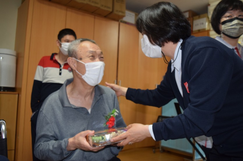 거주인 이야기 | 2021년 어버이날 기념 행사 페이지 정보 작성자 박성호 작성일 21-05-08 10:17 조회 12,113회 댓글 0건 본문 2021년 5월 8일. 어버이날을 맞아 서울특별시립평화로운집에 거주하고 계시는 가족분들을 위한 어버이날 행사를 진행했습니다!가슴에 달아드린 빨간색 카네이션처럼 항상 건강한 모습으로 곁에 오래오래 계시기를 기도합니다. 이전글 다음글 목록