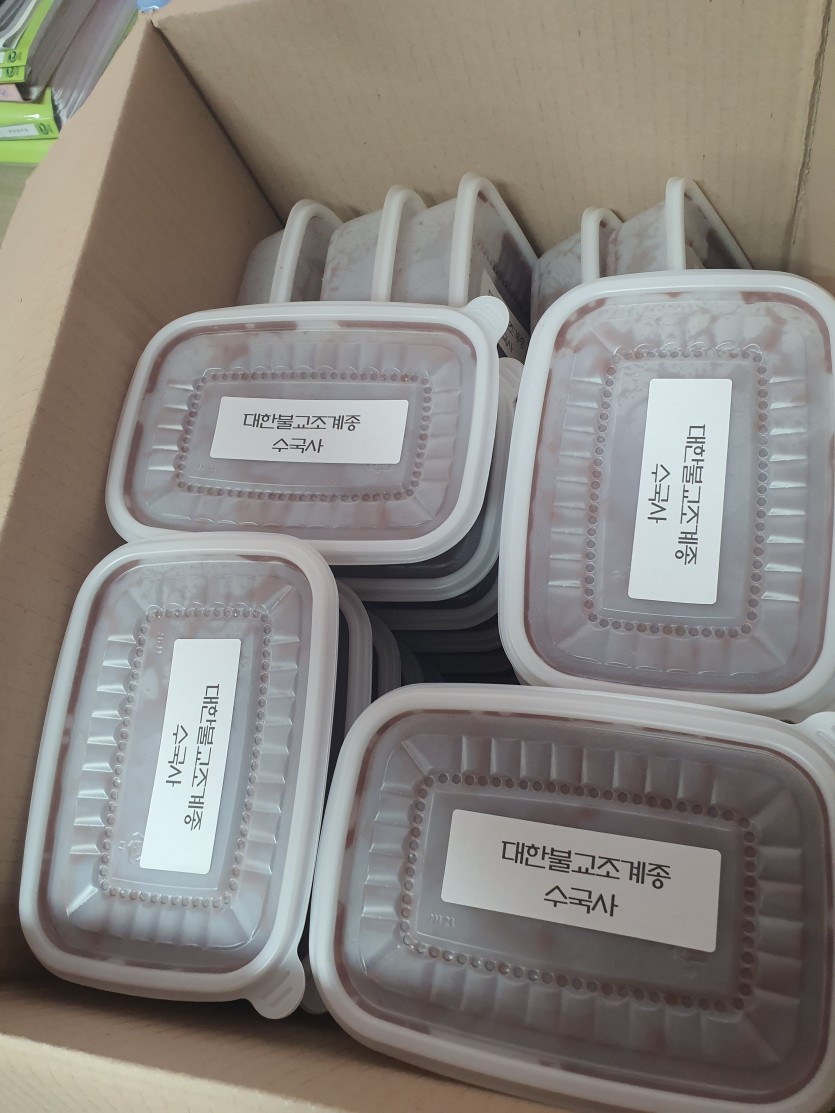 후원자·봉사자 이야기 | 대한불교조계종 수국사의 나눔 페이지 정보 작성자 박상은 작성일 19-12-23 13:42 조회 13,428회 댓글 0건 본문 12월 22일 일요일,동짓날을 맞아대한불교조계종 수국사에서 팥죽 150인분을 후원해주셨습니다.많은 양의 맛있는 팥죽을 후원해주신 덕분에평화로운집 가족 모두가 든든히 잡수시고행복한 동짓날을 보냈습니다.평화로운집에 관심 가져주시고 찾아주신수국사 신도 회장님과 스님께 진심으로 감사드립니다^-^ 이전글 다음글 목록