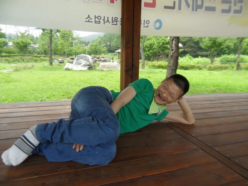공원 안에 있는 원두막 대청마루에 앉아 시원한 산바람을 맞으며