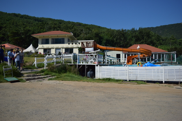 미끄럼틀이 있는 재미난 수영장과 가족분들이 편히 쉴 수 있는 멋진 펜션입니다.