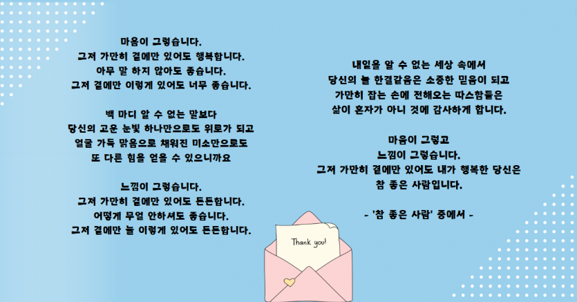 거주인 이야기 | 0913 2차 치과 진료 페이지 정보 작성자 장설궁 작성일 24-09-22 16:55 조회 7,348회 댓글 0건 본문 평화로운집 가족들의 오복 중 하나인 치아 건강에 힘써 주시는 의료진과 평화로운집 선생님들께 감사의 마음을 전합니다.감사합니다. 이전글 다음글 목록