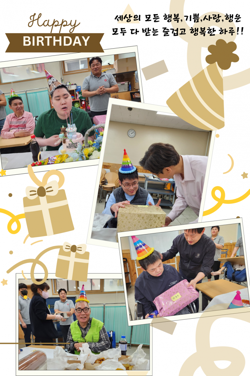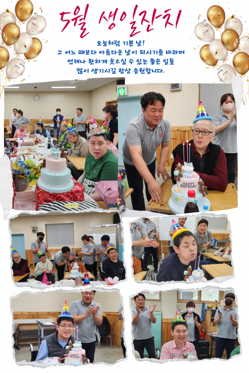 거주인 이야기 | 5월 생신잔치 페이지 정보 작성자 장설궁 작성일 24-05-15 18:05 조회 7,773회 댓글 0건 본문 5월 생신잔치가 13일 치킨과 아이스크림케잌 들로 진행 되었습니다. 당신이 아름다운 이유는 다른 사람들 보다 멋있고 능력있고 매력적이라서가 아닙니다.이 세상에 당신이 존재하기 때문에 당신밖에 없기 때문입니다.생신축하드립니다. 이전글 다음글 목록