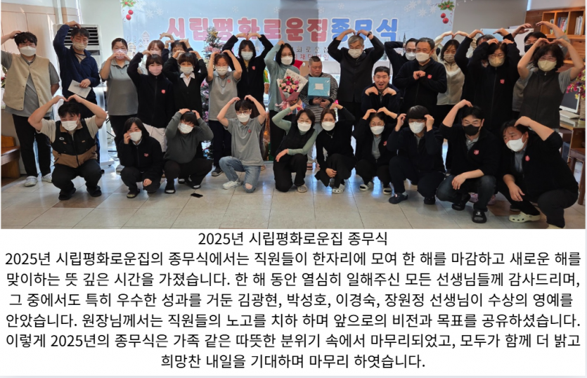 2025년 마무리 2026년의 시작 페이지 정보 작성자 장설궁 작성일 26-01-04 15:53 조회 788회 댓글 0건 본문 한 해의 끝은 또 다른 시작입니다.2025년의 모든 순간이 여러분을 더 단단하게 만들었기를 바라며,2026년에는 더 큰 꿈과 더 깊은 행복이 여러분 곁에 머물기를 소망합니다.새로운 도전 앞에서도 용기와 희망을 잃지 않으시길 바랍니다.새해 복 많이 받으세요! 이전글 다음글 목록