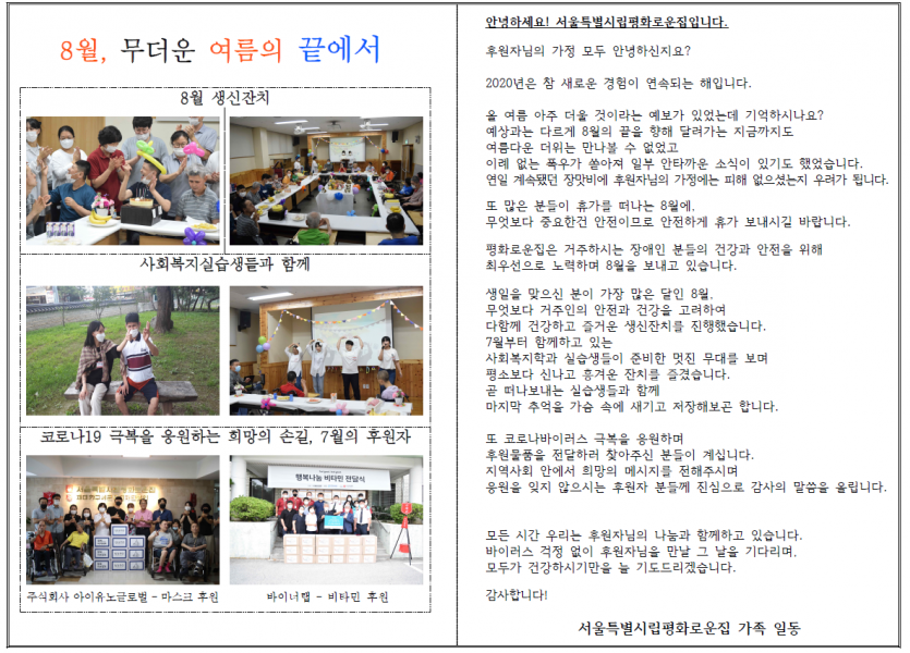 2020년 8월 후원자 감사편지 페이지 정보 작성자 박상은 작성일 20-09-11 15:55 조회 14,034회 댓글 0건 본문 늘 나눔으로 함께해주시는 후원자님께감사의 편지를 올립니다. 이전글 다음글 목록