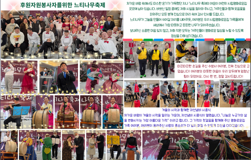 2026년 시립평화로운집 1월 후원감사편지 페이지 정보 작성자 장설궁 작성일 26-01-04 09:52 조회 891회 댓글 0건 본문 2026년 병오년이 밝았습니다. 지난 한 해 보내주신 배려에 깊이 감사드리며, 새해에도 건강과 평안이 늘 함께하시길 기원드립니다.병오년 새해를 맞아 가정에 행복이 가득하시고, 하시는 일마다 좋은 결실이 있기를 바랍니다. 이전글 다음글 목록