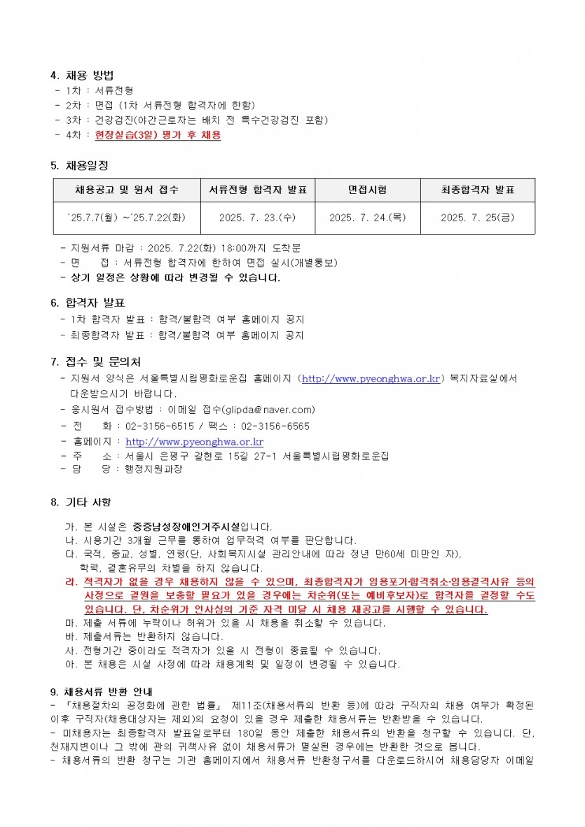 2025년 5차 직원채용공고 페이지 정보 작성자 한동주 작성일 25-07-07 13:31 조회 8,683회 댓글 0건 첨부파일 파일 2025년 5차 생활지도원.hwp (114.5K) 98회 다운로드 DATE : 2025-07-07 13:31:23 파일 시립평화로운집 입사지원서이력서,자기소개서및개인정보동의서.hwp (54.0K) 115회 다운로드 DATE : 2025-07-07 13:31:23 본문 이전글 다음글 목록 답변