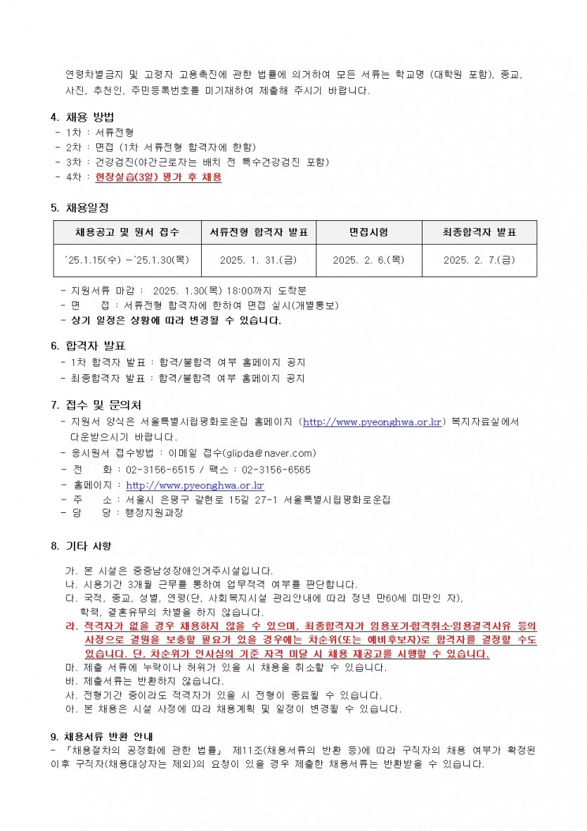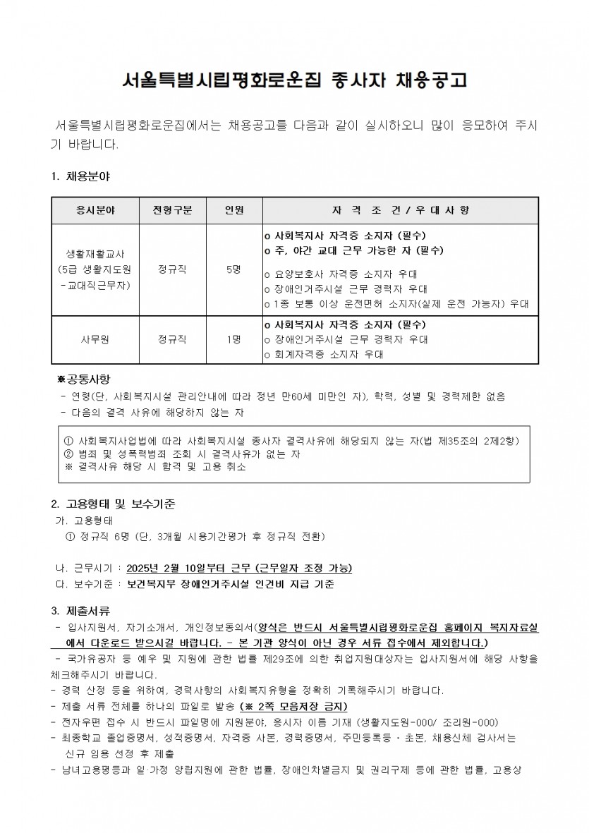 서울시립평화로운집 2025년 1차 직원채용 공고 페이지 정보 작성자 한동주 작성일 25-01-15 11:16 조회 16,169회 댓글 0건 첨부파일 파일 2025년-생활지도원 사무원 1월.hwp (115.5K) 151회 다운로드 DATE : 2025-01-15 11:21:22 파일 시립평화로운집 입사지원서이력서,자기소개서및개인정보동의서.hwp (54.0K) 135회 다운로드 DATE : 2025-01-15 11:21:22 본문 이전글 다음글 목록 답변