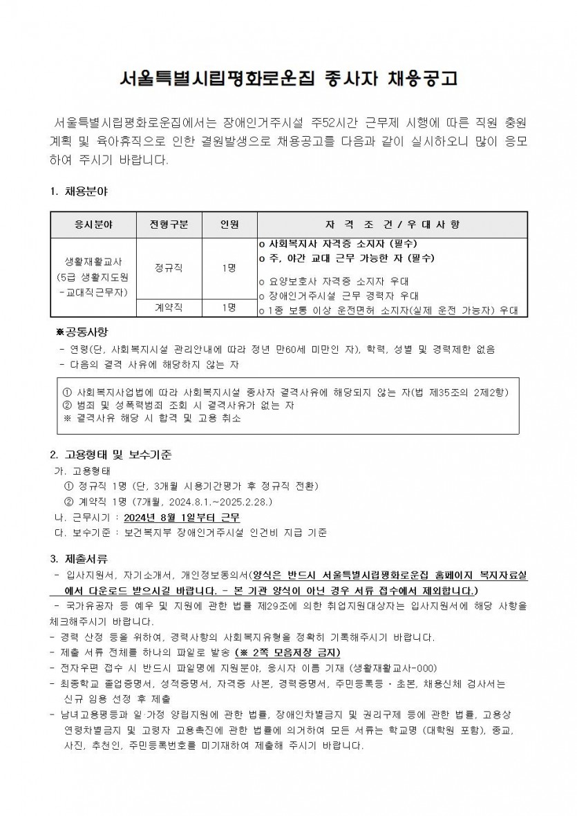 평화로운집 7차 종사자채용 공고 페이지 정보 작성자 한동주 작성일 24-07-08 13:33 조회 18,427회 댓글 0건 첨부파일 파일 2024년-생활지도원-7월.hwp (36.5K) 160회 다운로드 DATE : 2024-07-08 13:33:49 파일 시립평화로운집 입사지원서이력서,자기소개서및개인정보동의서.hwp (22.5K) 124회 다운로드 DATE : 2024-07-08 13:33:49 본문 이전글 다음글 목록 답변
