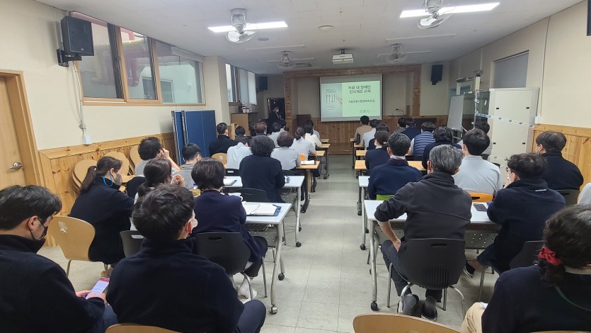 공지 | 장애인 인식 개선 교육 페이지 정보 작성자 장설궁 작성일 23-03-17 15:47 조회 7,783회 댓글 0건 본문 장애감수성을 키우고 장애공감문화 조성과 장애유무를 떠나 "우리는 모두 사람이니까" 라는 관점을 통해 포용사회 실현에 기여하기 위한 장애인 인식개선교육을 3월 15일 실시하였습니다. 열강을 해주신 조효식, 장양숙 강사님과 경청해주신 선생님들 감사합니다. 이전글 다음글 목록