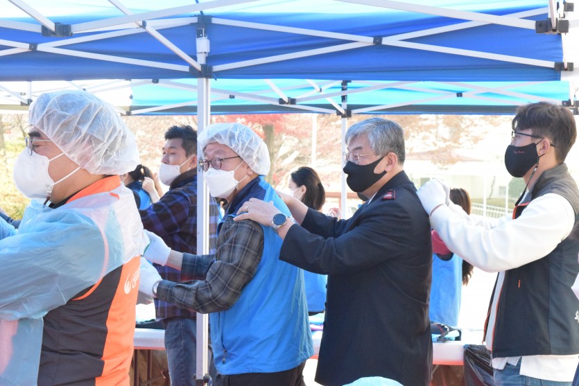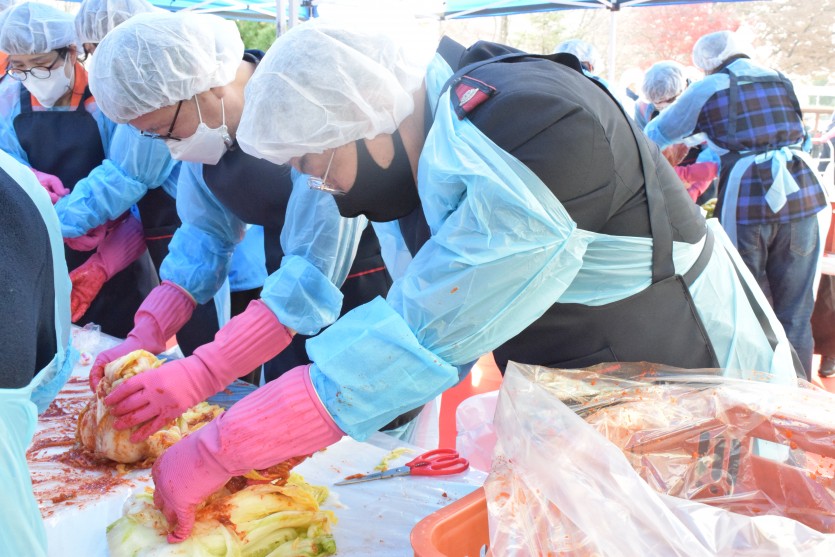 신복위와 서금원 임직원 40여 명은 직접 담근 김치 1천 포기와 직원들이 마련한 기부금을 전달해주셨습니다.