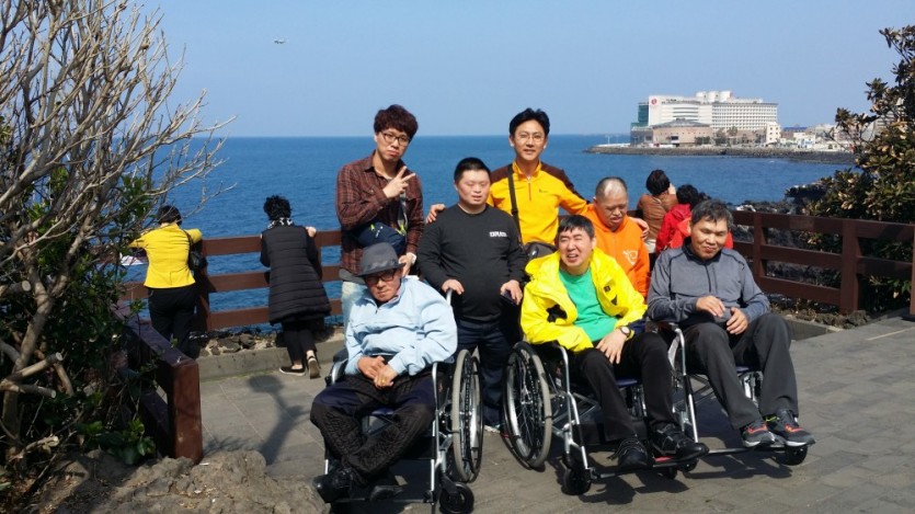 휠체어 타신 분이 계시니 가까이 가지는 못하고 가장 가까운 곳에 접근하여