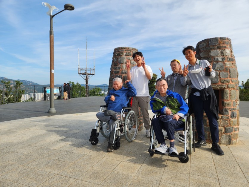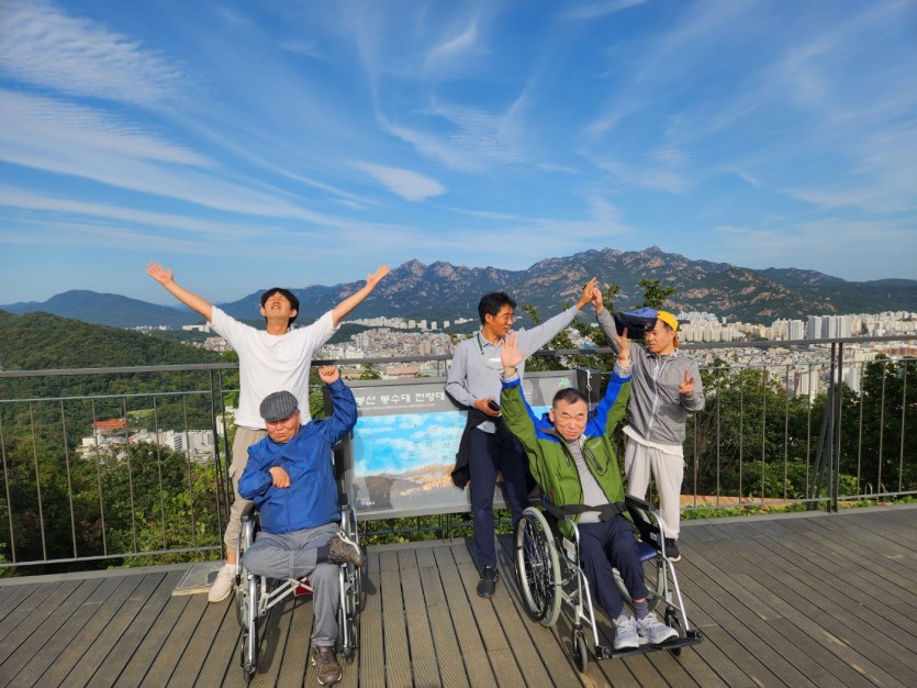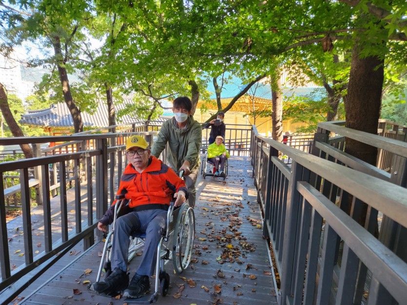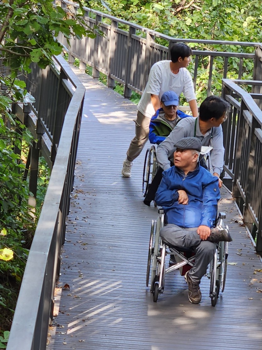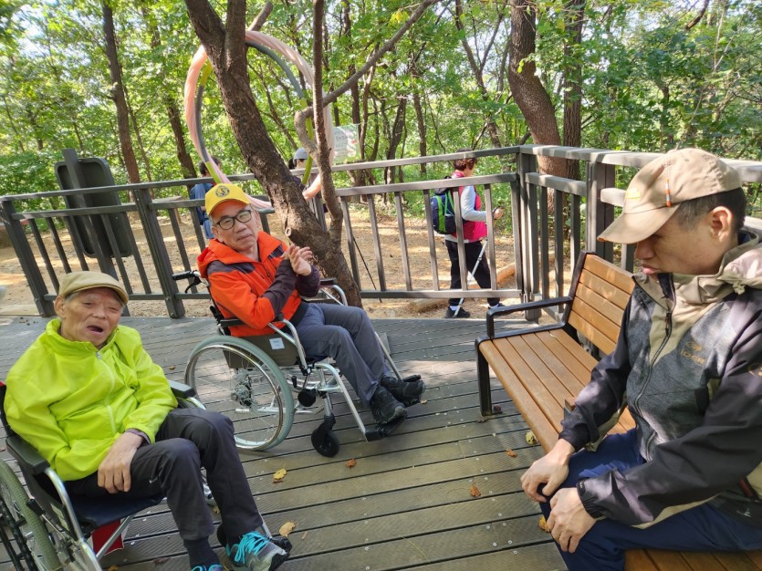 거주인 이야기 | 봉산 편백나무 휠체어 숲 트레킹 페이지 정보 작성자 장설궁 작성일 23-10-09 09:18 조회 8,841회 댓글 0건 본문 평화로운집 가족들과 10월 5일 6일 봉산 편백나무길 휠체어 트레킹을 다녀왔습니다. 비 온 뒤 맑은 하늘과 숲의 향기도 맡고 꽃과 나뭇잎을 만져보며 느껴보고힘들게 정상에 올라 맛보는 과일의 꿀맛 파아란 하늘이 웃어준 즐겁고 행복한 산행이었습니다. 이전글 다음글 목록