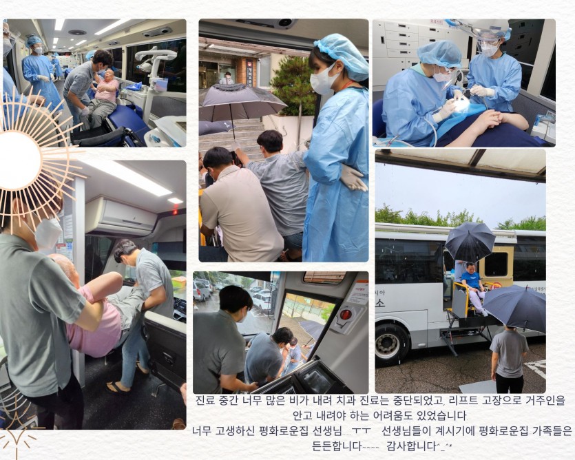 거주인 이야기 | 0810 2차 치과진료 페이지 정보 작성자 장설궁 작성일 23-08-10 17:53 조회 9,109회 댓글 1건 본문 태풍 카눈이 북상하며 많은 비가 내리는 가운데 장애인치과병원 2차 진료가 진행되었습니다. 의료진과 평화로운집 선생님들에게 다시 한번 감사의 마음을 전합니다."감사합니다" 태풍의 영향으로 강풍과 폭우가 예상된다고 합니다. 태풍으로 인한 피해 없도록 조심하세요무사히 태풍이 지나가기를 바랍니다. 댓글목록 조윤기님의 댓글 조윤기 작성일 23-08-18 19:26 비가 오는 가운데 모두 수고 많으셨습니다 비가 오는 가운데 모두 수고 많으셨습니다 이전글 다음글 목록