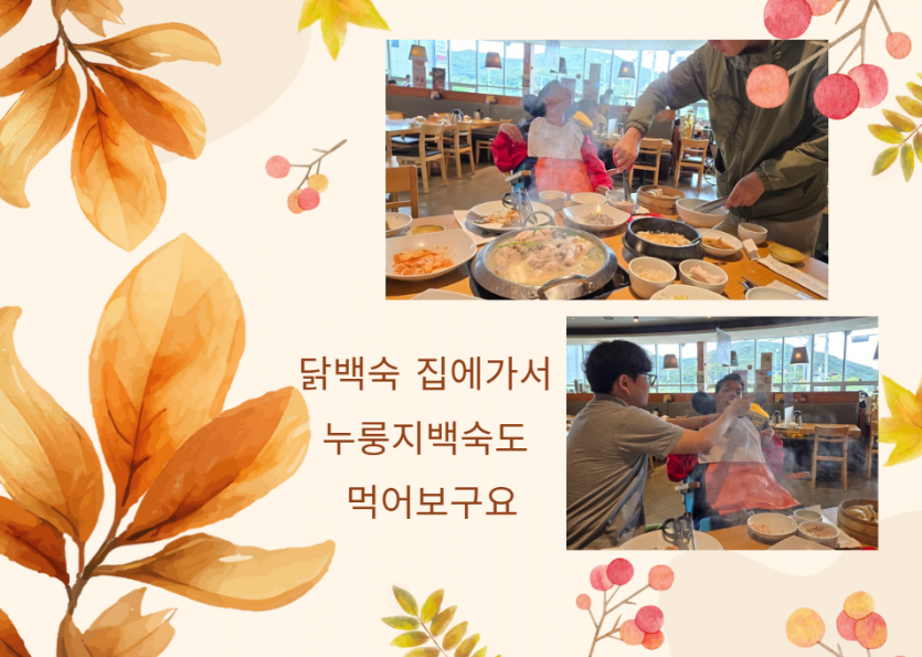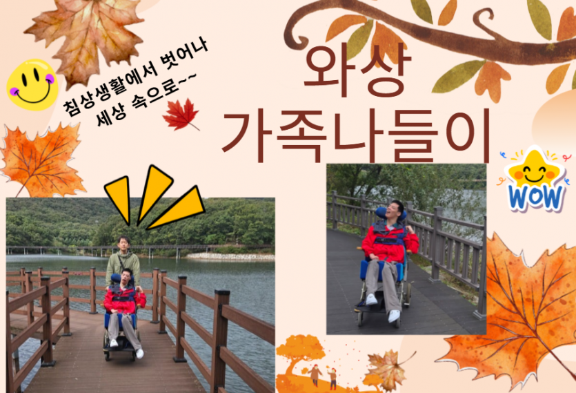 거주인 이야기 | 2025 와상 가족 나들이 페이지 정보 작성자 장설궁 작성일 25-10-30 09:41 조회 2,096회 댓글 0건 본문 와상가족나들이 침상에서만 지내다 첫 외출을 합니다.선생님들과 함께 바깥으로 나서는 순간, 상쾌한 바람이 얼굴을 스치니 웃음이 절로 납니다.오랜만에 보는 주변의 풍경은 새롭게만 느껴집니다.오늘의 나들이는 오래도록 기억될 소중한 시간이 되었습니다. 감사합니다. 이전글 다음글 목록