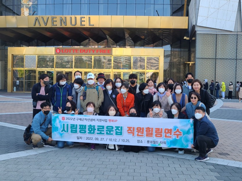 2022년 직원연수 페이지 정보 작성자 장설궁 작성일 22-10-13 16:12 조회 11,647회 댓글 0건 첨부파일 파일 2차직원연수0.5.gif (11.3M) 125회 다운로드 DATE : 2022-10-13 16:39:03 본문 2022년 9월 27일 원장님,10월 12일 국장님, 10월25일 직원과 함께한 직원교육...저희평화로운집 직원93분들이 약 30여분씩 3차에 걸쳐 직원연수가 있었습니다. 2022년 기준 대한민국 최고층 건물이자 세계에서 5번째로 높은 건물인 서울스카이를 다녀왔습니다. 중식후 영화관람과 롯데어드벤처투어가 있었구요~~갑자기 쌀쌀해진 날씨에 모든 직원분들 모~두 참석해 주셔서 감사합니다~~ 이전글 다음글 목록