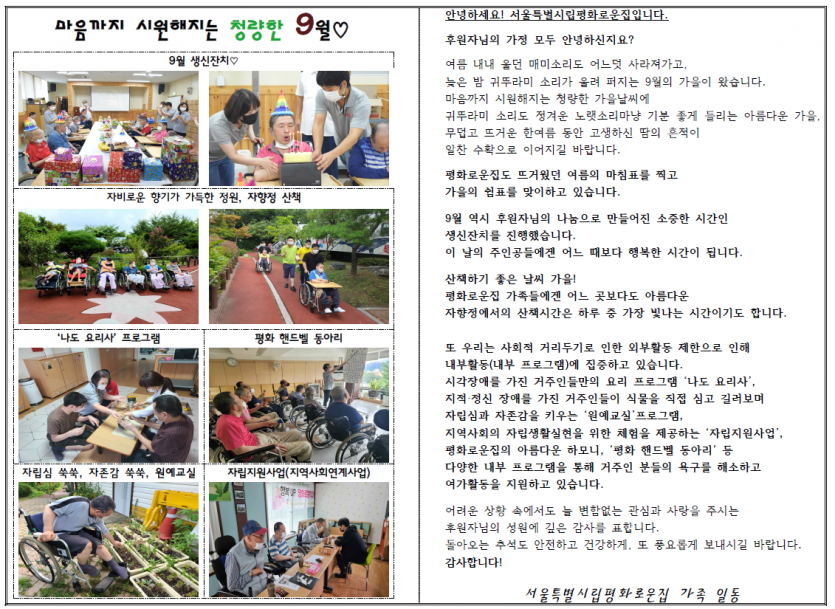 2021년 9월 후원자 감사편지 페이지 정보 작성자 박상은 작성일 21-11-18 10:03 조회 12,605회 댓글 0건 본문 가을의 시작!9월, 후원자님께 감사의 편지를 올립니다. 이전글 다음글 목록