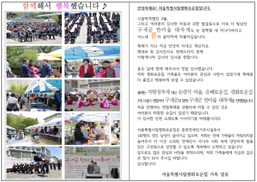 2019년 4월 후원자 감사편지_연합축제관련 페이지 정보 작성자 박상은 작성일 20-09-11 11:48 조회 13,640회 댓글 0건 본문 늘 나눔으로 함께해주시는 후원자님께감사의 편지를 올립니다. 이전글 다음글 목록
